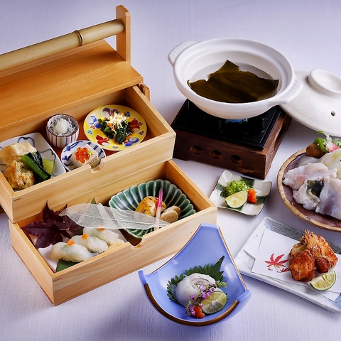 冬季限定「淡路三年とらふぐ御膳」「蟹御膳」(11/1~2/28)や握り寿司、天ぷらなど豊富にご用意!
