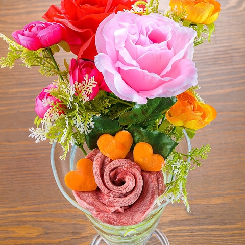 肉ケーキ・肉ブーケはご希望にあわせてメッセージプレートや、サプライズ演出もご対応可能!詳細は「料理」欄をご確認ください。※事前の電話ご予約必須
