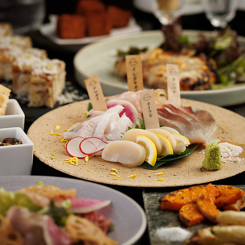 食材と同じく、産地や作り手の想いを知ることから始まります。ドリンクで感じる季節感や、料理とのペアリングなど…何度来ても新しい出会いがあるはず♪お得に楽しむ飲み放題付プランや日本酒飲み放題もご用意◎大崎・五反田エリアでのご宴会・デート・記念日に!