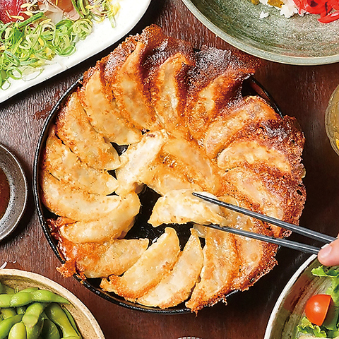 鉄鍋にぎっしり敷き詰められた餃子を職人が焼き上げる!ビールやハイボールと相性◎本格的な味が楽しめます