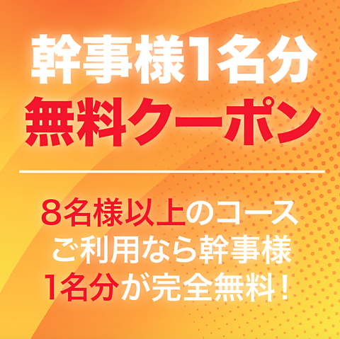 忘新年会◎全コースに使えるお得なクーポン♪8名様以上のコースご利用なら幹事様1名分が完全無料!