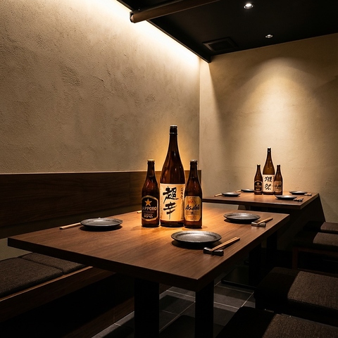 【明るい店内×完全個室】2名様~ご利用可能な個室席完備。周りのお客様を気にせずゆったりご宴会をお楽しみいただくことが可能!上質な空間で絶品料理の数々をお楽しみください。シーン・人数に合ったお席をご用意致しますので、ご希望が御座いましたらお気軽にご相談下さい。
