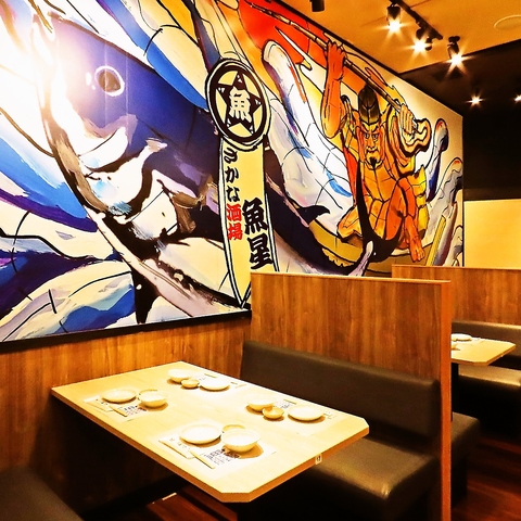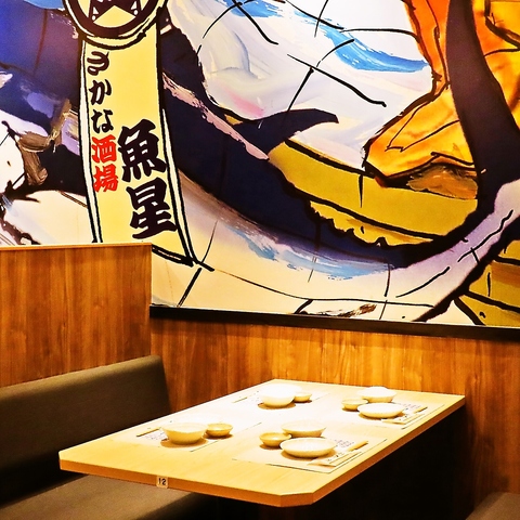 【2名様からご利用可能なBOX席】稲城でのデートや仕事帰りのカジュアルな飲み会などにおすすめ。明るくにぎやかな店内は、お誕生日やご友人との飲み会にもおすすめです。さかな酒場 魚星こだわりの料理と厳選したお酒をゆっくりお楽しみいただける寛ぎ空間となっております。