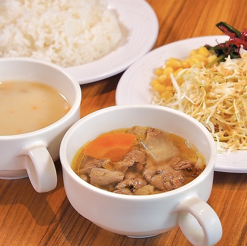 ステーキ・ハンバーグ・コンボメニューご注文で、サラダ・スープ・ライスが食べ放題!
