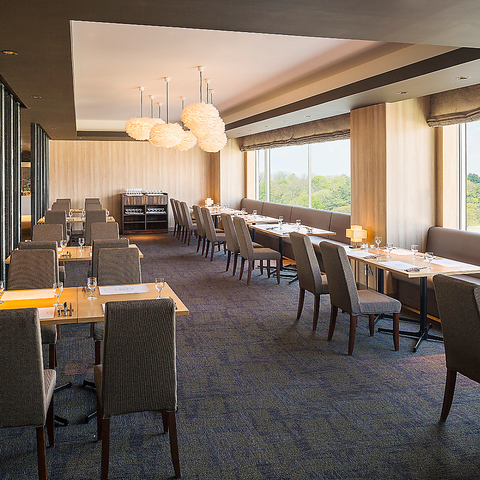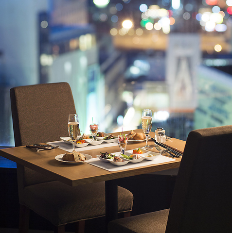 当ホテル自慢の、地上50メートルからの景色を眺めながら食を楽しめる開放的なレストラン。