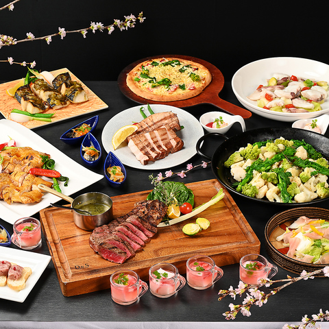 大切なハレの日におすすめの、グリル料理が彩る春のご馳走ディナー!富士の溶岩石を使用した石窯で調理した贅沢なグリル料理が並ぶだけでなく、新鮮な魚や野菜、ピザやパンなど、アツアツの限定メニューが並びます。