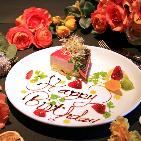 お誕生日、長寿祝い、ご入学、ご卒業、ご就職、各種記念日など、特別なハレの日におすすめの「アニバーサリープレート」。お好きなメッセージを入れて、お食事とご一緒にちょっとしたサプライズにどうぞ!