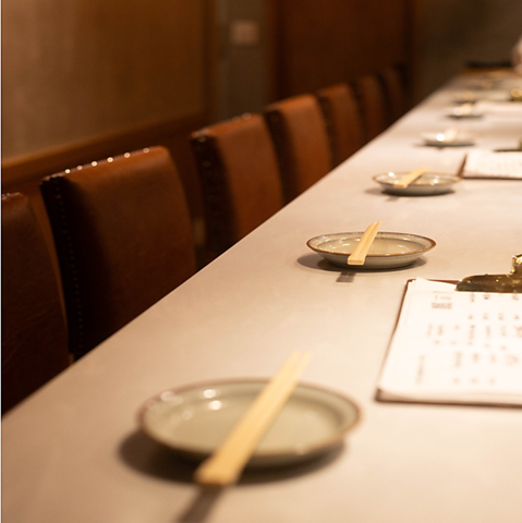 店内には、オシャレなL字型のカウンター席を12席ご用意しております♪お一人様でじっくりとお酒を味わいたい時や、大切な方とのデートにもおすすめです◎落ち着いた雰囲気の中で素敵な時間をお過ごしください。