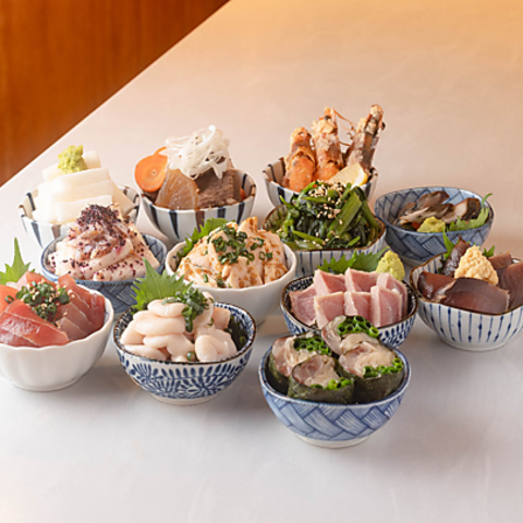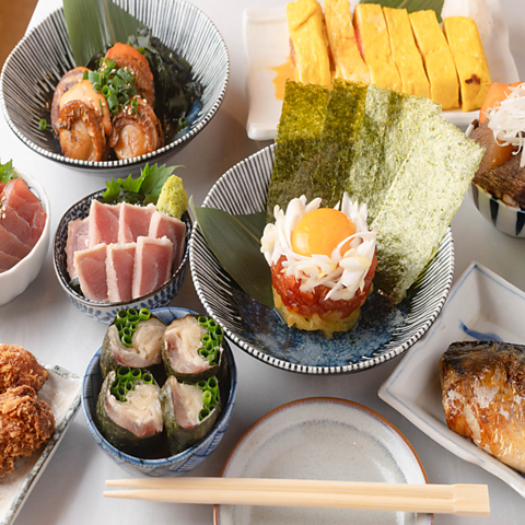 まず味わっていただきたいのが、当店名物のおばんざいです♪単品でのご提供はもちろん、お得な「おばんざい3種盛り」や「おばんざい5種盛り」もご用意しております。丁寧に作られた和のお惣菜は、どれもお酒との相性抜群◎お好みのお酒とご一緒に心ゆくまでお楽しみください。お一人様でのご利用はもちろん、ご友人とのシェアにもぴったりです。