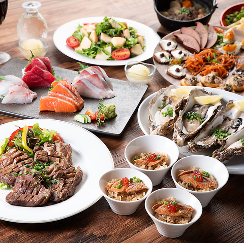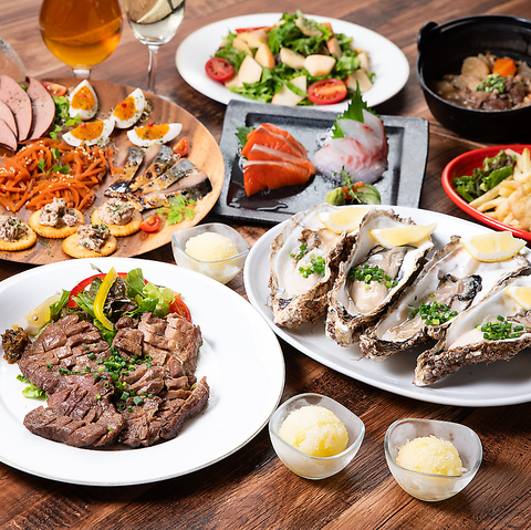 【2時間飲放】三陸の生牡蠣と仙台名物牛タンステーキの6000円スタンダードプラン