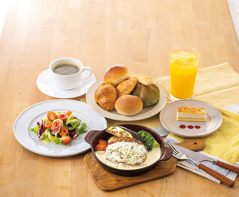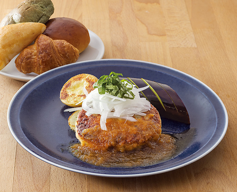 人気のハンバーグをオリジナル和風ソースで。和の味わいは想像以上にパンにも合います。