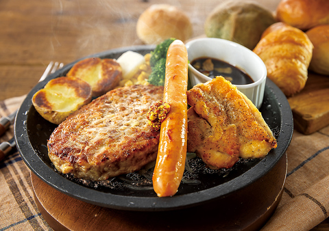 【ハンバーグ】3種のミックスグリル(ガーリック醤油)
