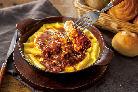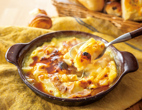 鶏もも肉とベーコンの旨味やコク、玉ねぎの甘さが詰まった王道グラタン。