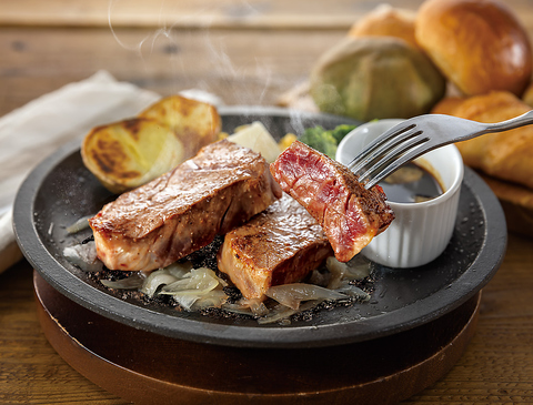195g 2189円(税込)/260g 2739円(税込) にんにく(ガーリックオイル含む)を使用しています。脂身が少なく赤身のおいしさを味わうことができ、肉厚でも柔らかさを感じられます。195g、260gサイズにはお肉を焼くための鉄板がつきます