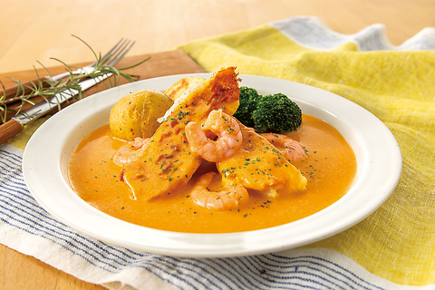 白身魚をクリーミーなイセエビソースで仕上げました。
