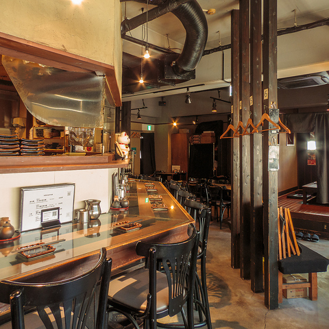 落ち着いた雰囲気の店内は、温かみのある照明が心地よい空間を演出しています。黒いテーブルと椅子が店内の雰囲気とマッチしてゆっくりと食事をお楽しみいただけます。こだわりの焼き鳥の香ばしい香りと相性抜群の様々なドリンクを心ゆくまでお楽しみいただけます。