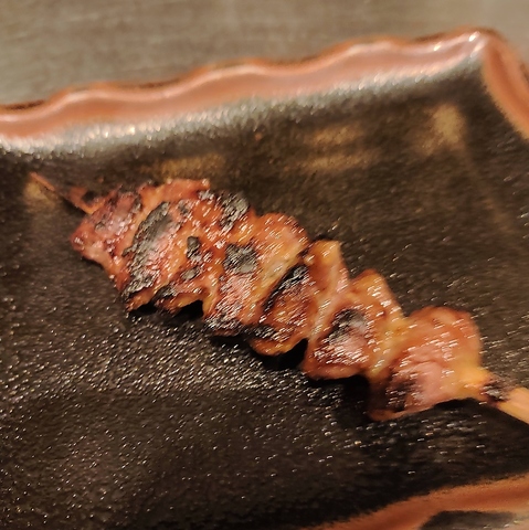 鶏肉の旨みとネギの甘みを炭火でじっくり焼き上げた、串焼きの王道「ねぎま」。外は香ばしく、中はふっくらジューシー。絶妙な火入れが光る、迷ったらまずは頼みたい一本です。ビールとの相性もぴったり♪