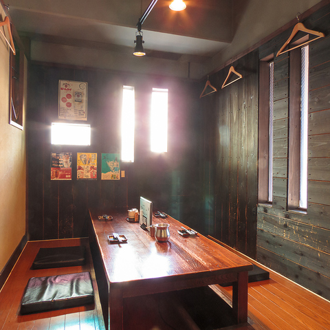 落ち着いた雰囲気の店内は、温かみのある照明が心地よい空間を演出しています。黒いテーブルと椅子が店内の雰囲気とマッチしてゆっくりと食事をお楽しみいただけます。こだわりの焼き鳥の香ばしい香りと相性抜群の様々なドリンクを心ゆくまでお楽しみいただけます。