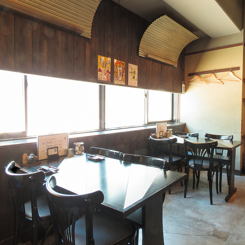 店内は温かみのある木の壁とシンプルな黒いテーブルが特徴で、落ち着いた雰囲気を醸し出しております。また、大きな窓も空間を演出するポイントの一つ。ゆったりとした食事を楽しむ準備が整っています。友人や家族と共に、楽しいひとときをお過ごしいただけます。