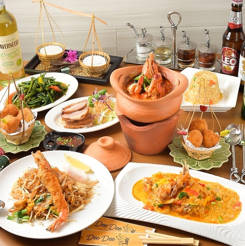 「これが、DeeDee自慢のタイ料理」定番のパッタイから、香り高いトムヤムクン、大人気の空芯菜炒めまで。食卓を彩る本格的なタイ料理を、少しずつたくさんお楽しみいただけます。お酒との相性も抜群!今夜はタイ料理で、素敵なひとときをどうぞ