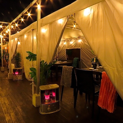 寒い季節にもピッタリのグランピング&BBQを防寒対策◎な屋上テラスでお過ごしいただけます♪寒さ対策も◎