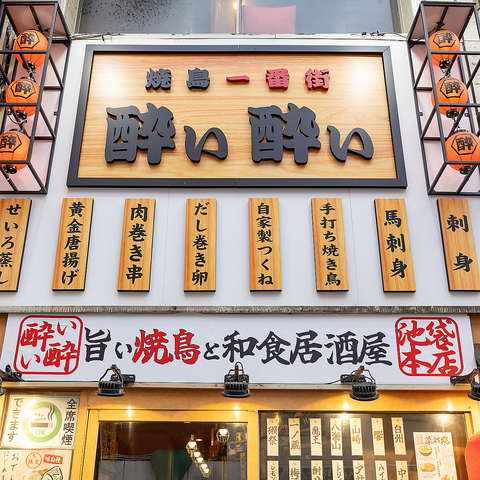 【お手頃価格でレトロな雰囲気を楽しむ♪】池袋駅西口前にある【焼鳥一番街 酔い酔い】は、ちょっぴりレトロでお洒落な雰囲気が魅力★店前の提灯が目印!大きな焼き鳥はもちろん、色々楽しめる刺身3点盛りや馬刺しなど、豊富なメニューが揃っています!美味しい料理と楽しい時間をお過ごしください♪