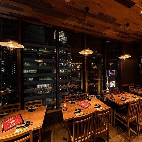 居酒屋なのに夜景も見えるウッド調の落ち着いた店内。女子会や合コン、ゆったり飲みに最適です。お仕事帰りのちょっとしたお食事から、35名以上の宴会貸し切りまで、皆様のご都合に合わせてご利用ください。