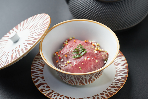霜降り肉や、トリュフユッケ、焼物はもちろん、肉しゃぶまで付いた自信のある逸品をお楽しみいただける”焼かない焼肉”コースとなっております。