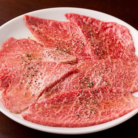 王道のネギタンは、極上のタンにたっぷりのネギがトッピングされた一品です。柔らかいタンの食感と、爽やかなネギの香りが絶妙に絡み合い、一口ごとに楽しさが広がります。焼くことで香ばしさが引き立ち、ジューシーな肉汁が口の中に広がる瞬間は、まさに至福の一言です。シンプルながらも、素材の良さが際立っております。