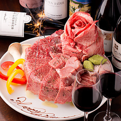 誕生日や記念日!特別な日には、当店自慢の「肉ケーキ」をぜひご利用ください!インパクトのある見た目で、場の空気も盛り上がること間違いなしです♪黒毛和牛A5ランクを含む「おまかせコース」と同じ内容の肉で作っているので見た目だけでなく味も間違いありません◎お祝い事は華やかに!当店の想いからご用意させていただいております。