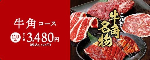 一番人気の牛角コース!厚切りのお肉や牛タンカルビが食べ放題です!