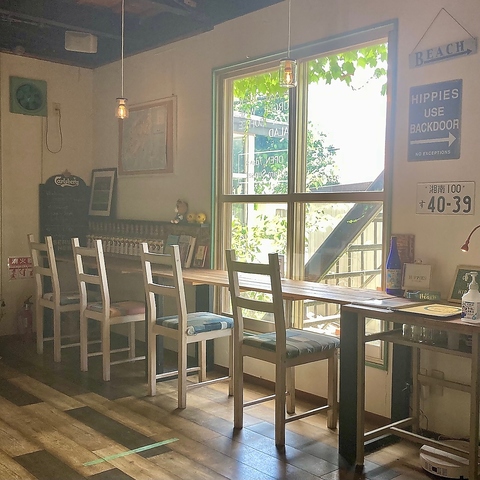 【緑に囲まれた開放的な空間】大きな窓から光が差し込む店内は、緑が多く開放的。日常を忘れさせるような、リラックスした雰囲気の中でお食事をお楽しみください。