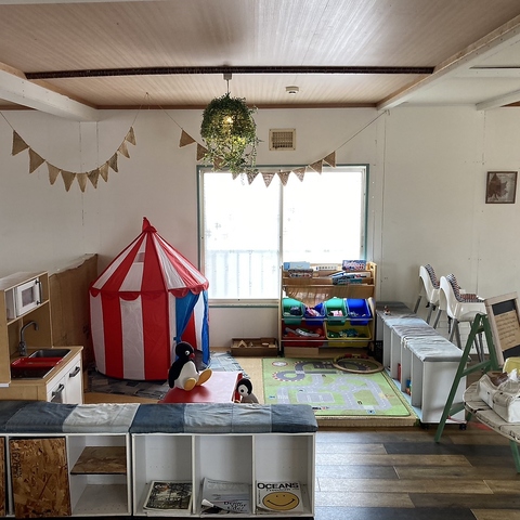 キッズスペースはどこからも目が届き安心♪お子様用の椅子、カトラリー、おむつ替え台もご用意してます。