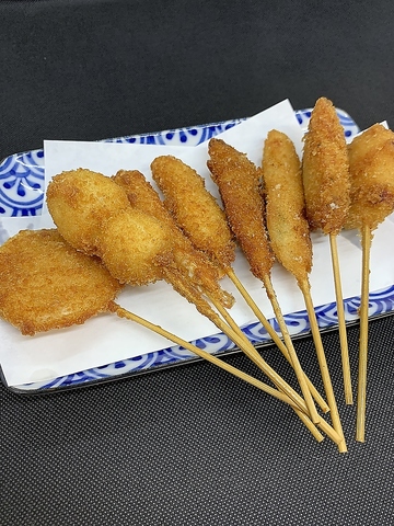豚/えび/れんこん/うずら/いわし梅しそ/紅しょうが/鶏ささみ大葉など様々な種類の串カツをご用意しております◎お客様にお好きな味もきっとございます!揚げ物や焼き物など様々な料理がございますのでお楽しみください!!
