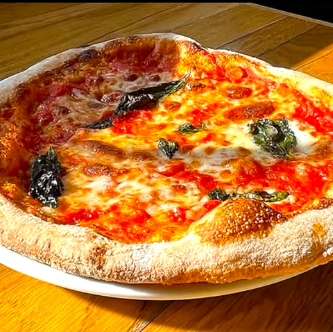薪を使い高温の窯で一気に焼き上げる本格的なナポリピザです。外はパリッと、中はもっちり。多種多様なトッピングも可能です。高温で一気に焼き上げるからこそ生まれる、香ばしい香りととろけるチーズの絶妙なハーモニー。熱々のまま、ぜひご堪能ください。