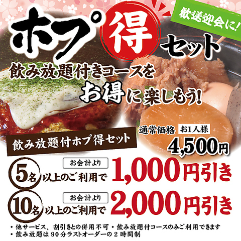 ★歓送迎会に★ ホプ得セットがお得!