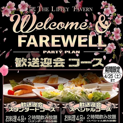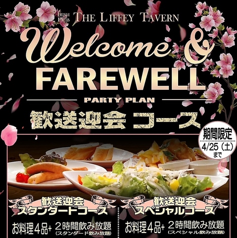 【歓送迎会】生ビール、ハイボール、カクテルなど50種以上のドリンクが飲める2時間飲み放題+料理4品のお得なコース!お料理はフィッシュ&チップスなど人気メニューから4品!歓送迎会に是非ご利用下さい!