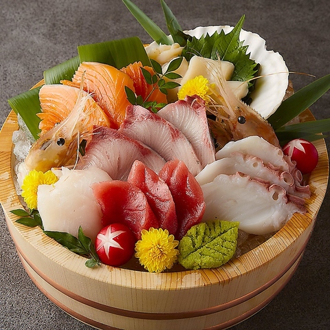 お客様に喜んで頂けるよう、新鮮な食材をご用意しています。種類豊富なメニューがあるのでどなたでも楽しんで頂けます!旬にこだわり、「素材」を生かす!! 当店のお刺身は毎日内容が変わります。旬の時期に合った魚を提供する。それが当店の「こだわり」です。