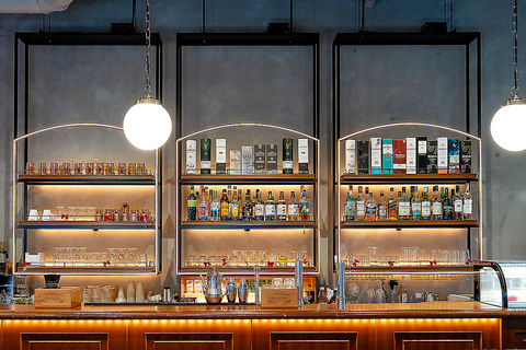上質感を醸しだすバーカウンターにはウィスキーやリキュール、スピリッツなどを多彩に管理。様々なお酒を楽しんでいただけます!