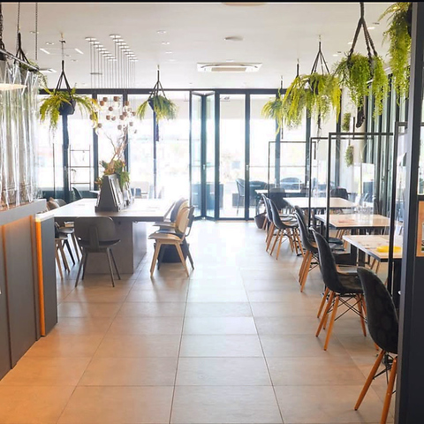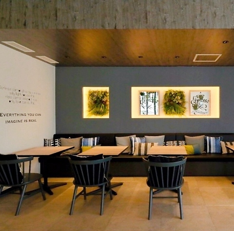 ソファ席を中心に、座り心地の良さを大切にした家具を配置し、心地よい空間を演出しています。席の間隔も広めに取られているため、周囲を気にせず会話や食事を楽しめるのが特徴。木の温もりが感じられるテーブルや椅子を組み合わせ、落ち着きのある雰囲気を実現。友人同士の集まりやご家族での利用にも快適なレイアウトです。