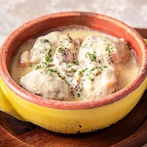 スペインバルでは定番の肉団子の煮込みをクリームソースでアレンジ!お酒のおつまみやバゲットと合わせてお楽しみください!お子様にもおすすめです◎
