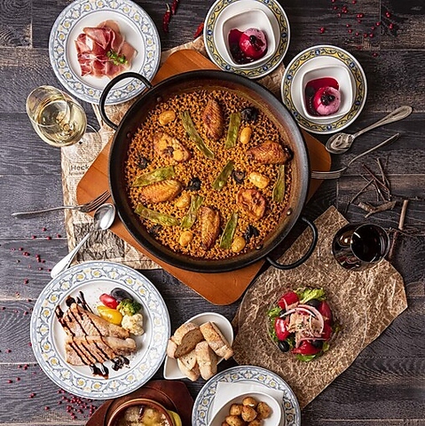バレンシア地方では有名なパエリアから、世界パエリアコンテスト金賞受賞パエリア。様々な前菜(タパス)~デザートまでついたコースもご用意致しております♪昼:2,980円~、ディナー4,480円~飲み放題コースもご用意致しております!