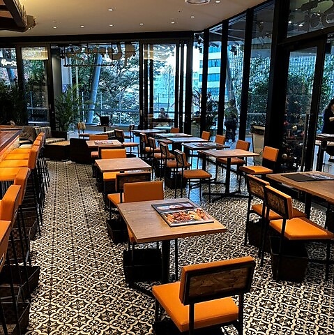 一面ガラス張りの開放的な店内、そよ風がここち良いテラス席!まるで海外にいるかのような雰囲気が味わえるテラス席♪外の空気の新鮮さと開放感が心地よく、おしゃれな外観を見ながらごゆっくりとお過ごし頂けます。昼はは明るい光が差し込み、夜は心地よい照明が癒しの空間を演出。