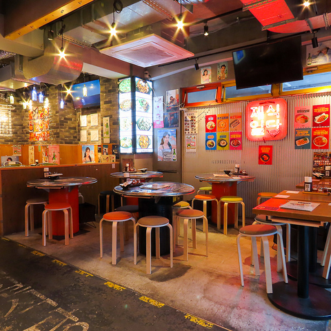 【新大久保韓国横丁 第一食堂】活気あふれる賑やかな店内には、さまざまな用途に使いやすいカウンター席やテーブル席を完備。お一人様はもちろん、ショッピング帰りのお食事や女子会などのお集まりにも最適です◎