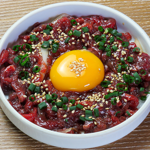 口に入れた瞬間に広がるお肉の甘みと、とろ~り絡まる濃厚な卵黄がたまらない逸品です!当店自慢の鮮度だからこそ味わえる、お肉本来の旨味を最大限に引き出しました。香ばしい胡麻とネギのアクセントが絶妙で、お酒のつまみにはもちろん、白米との相性も抜群。自分へのご褒美や、大切な方との特別なお食事にぜひご賞味ください♪