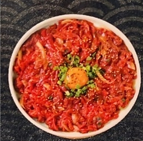 【新大久保韓国横丁 第一食堂】韓国料理の定番ユッケを自家製タレで味付けしました。ぜひお召し上がりください!!!