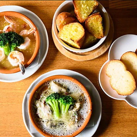 丁寧に下処理した海老や牡蠣が、特製オイルの中で踊るアヒージョは当店の自信作です。ニンニクの香ばしい風味が食欲をそそり、ぷりぷりとした食感の後に濃厚な旨味が口いっぱいに広がります。バゲットをオイルに浸せば、お酒のお供に最高な逸品へと早変わり。素材の鮮度を活かした贅沢な味わいは、一口ごとに幸せな感動を届けてくれます◎