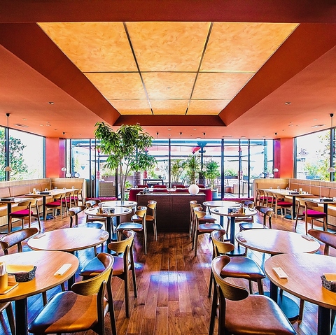 高い天井とオープンエアな空間が特徴の店内は開放感抜群。普段のデートから記念日のお食事にもおすすめです