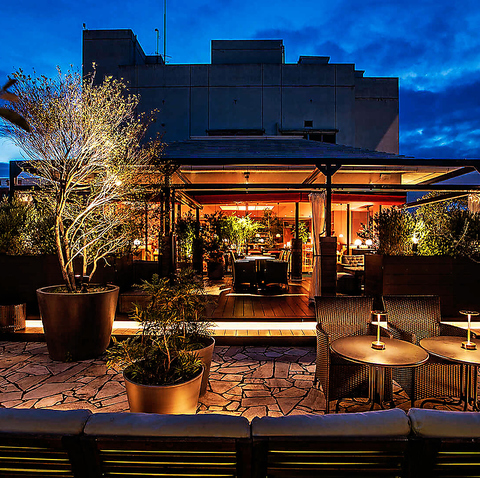 建物の4Fにあるルーフトップレストランです。昼と夜で表情をガラッと変える魅惑のテラス席。冬は暖房あり