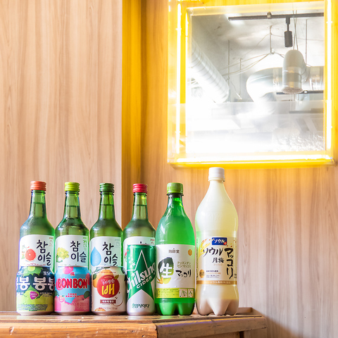 生ビールやハイボールなど定番のドリンクと韓国のお酒も充実したお得な飲み放題90分1900円、120分2300円(ラストオーダー15分前)